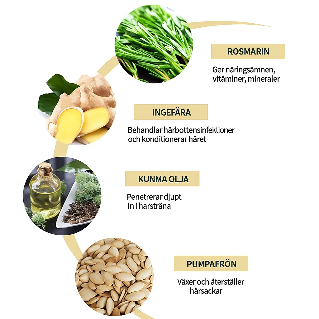 • Stimulerar hårväxt – rosmarin förbättrar blodcirkulationen i hårbotten och främjar ny hårväxt.